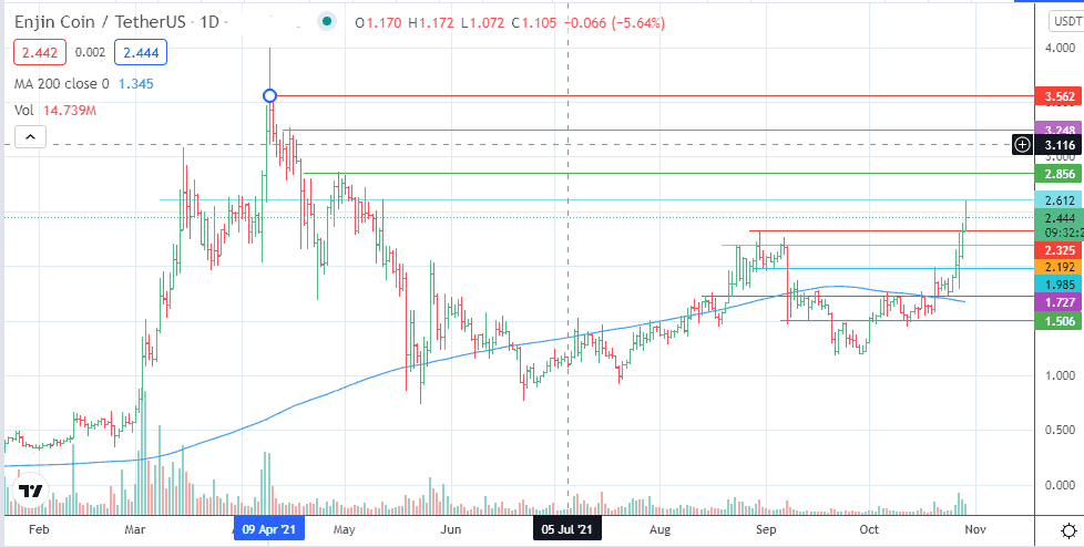 Nov 18, 2021 · enjin coin (enj) search trends. There is a correlation between price appreciation and public interest in cryptocurrencies, such as enjin coin. Our forecasting model sees enjin coin reaching $37.94 in 2030. On a bullish note, the price started to rise further and is trading at $3.48. Nov 19, 2021 · enjin coin (ccc: